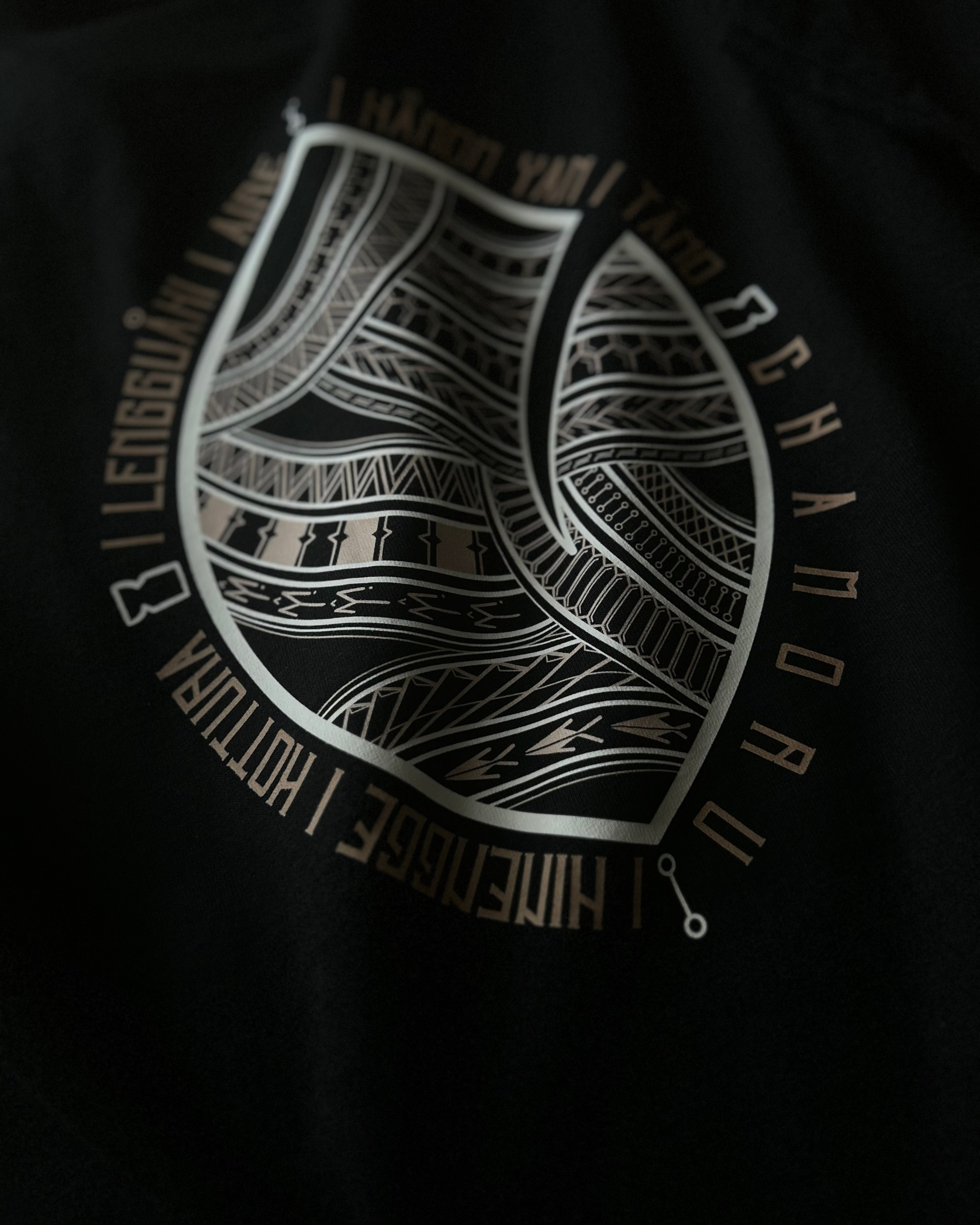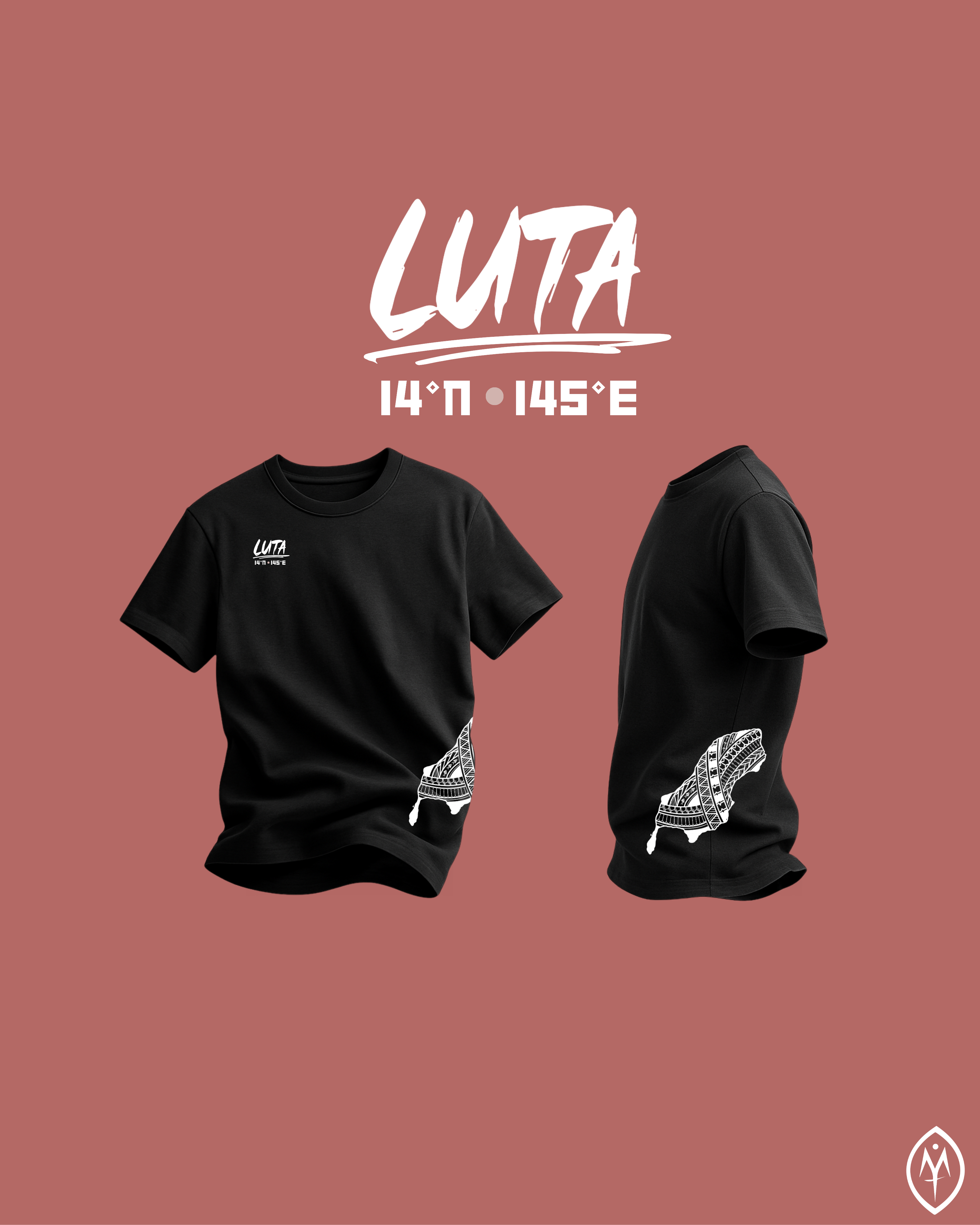 LUTA | 14°N •145°E on black. CHamoru Tribal side-print, Coordinates design on patch.