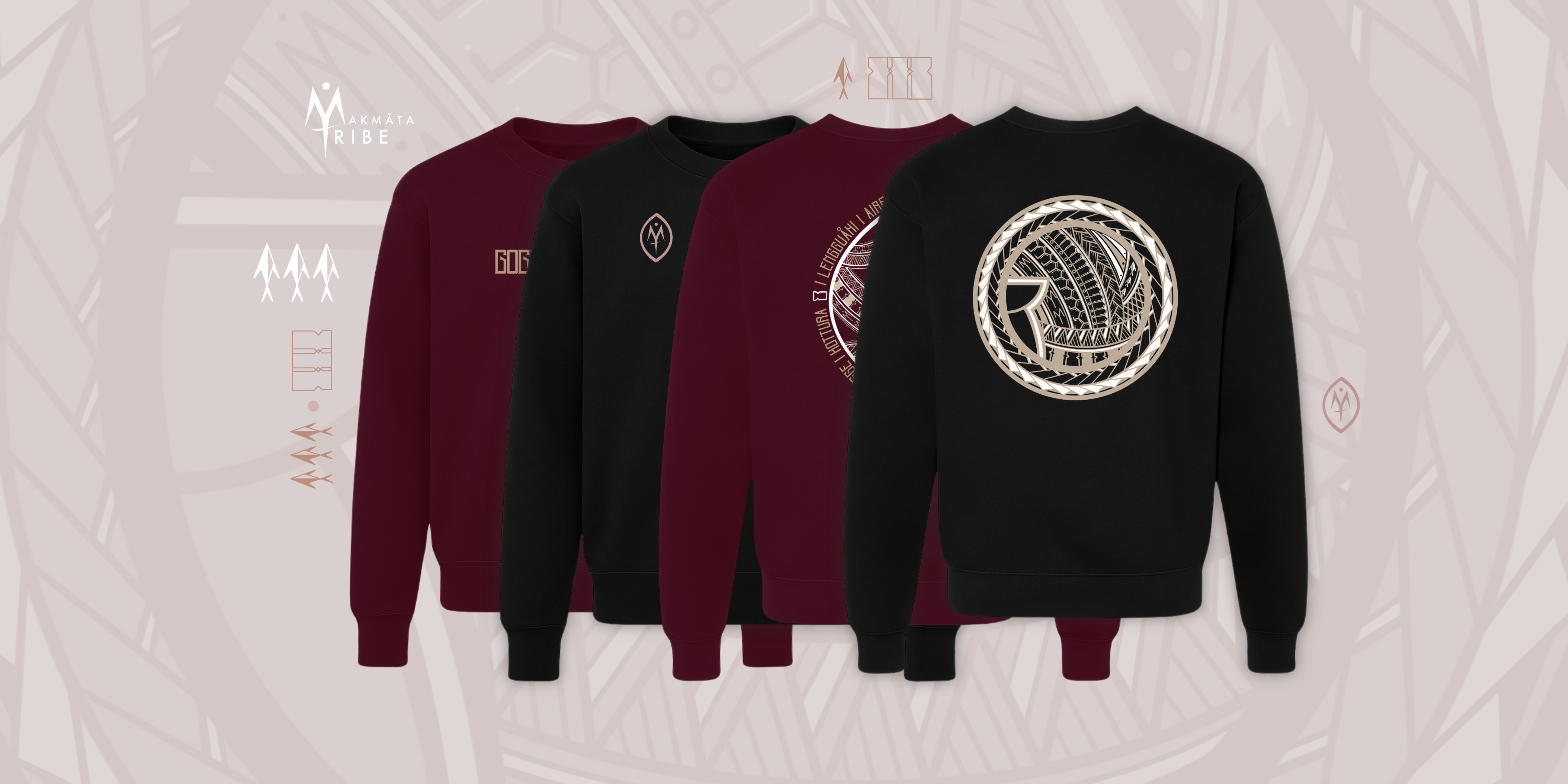 GUÅHAN | 13°N •144°E Sweater. CHamoru Tribal side-print, Coordinates design on patch.