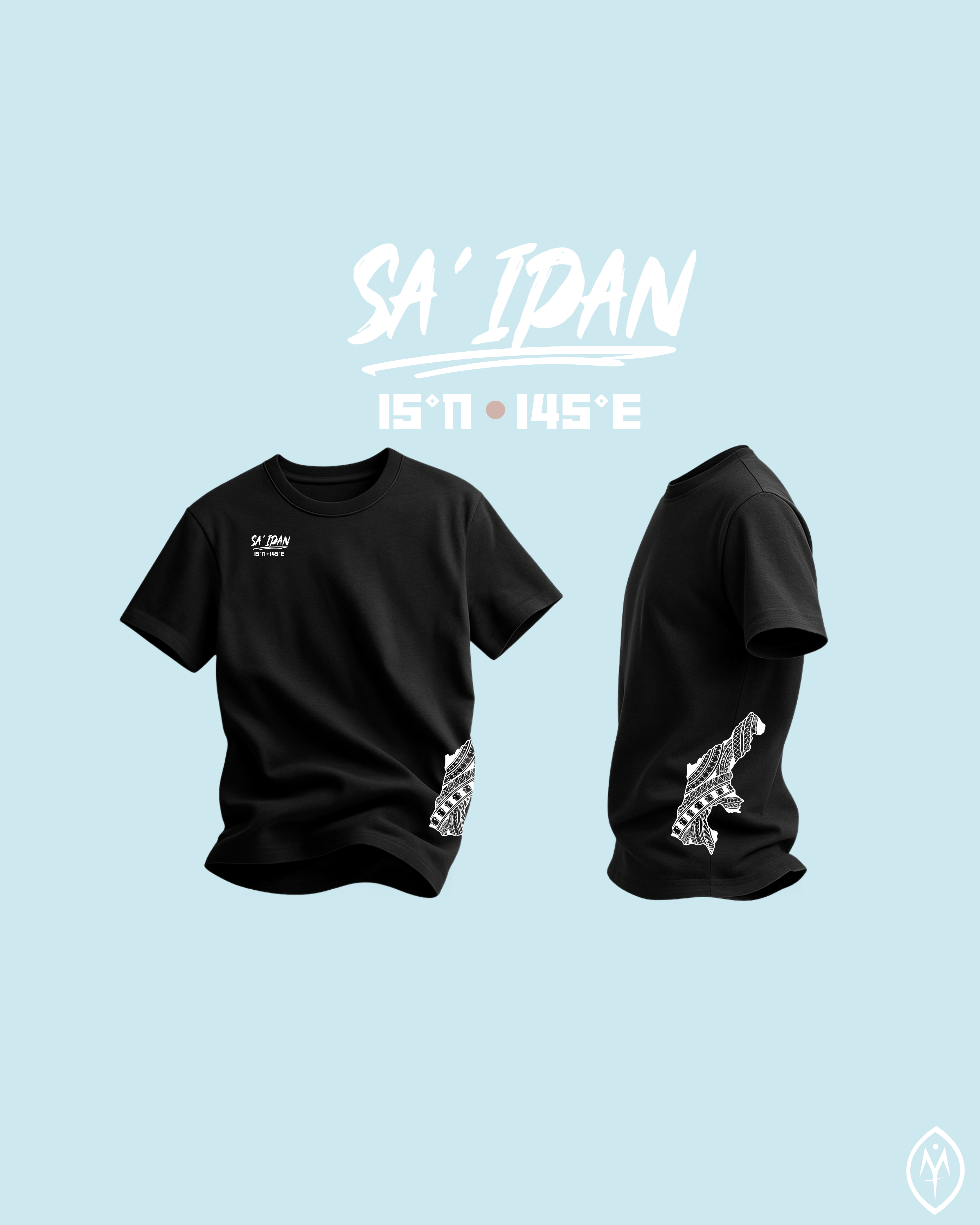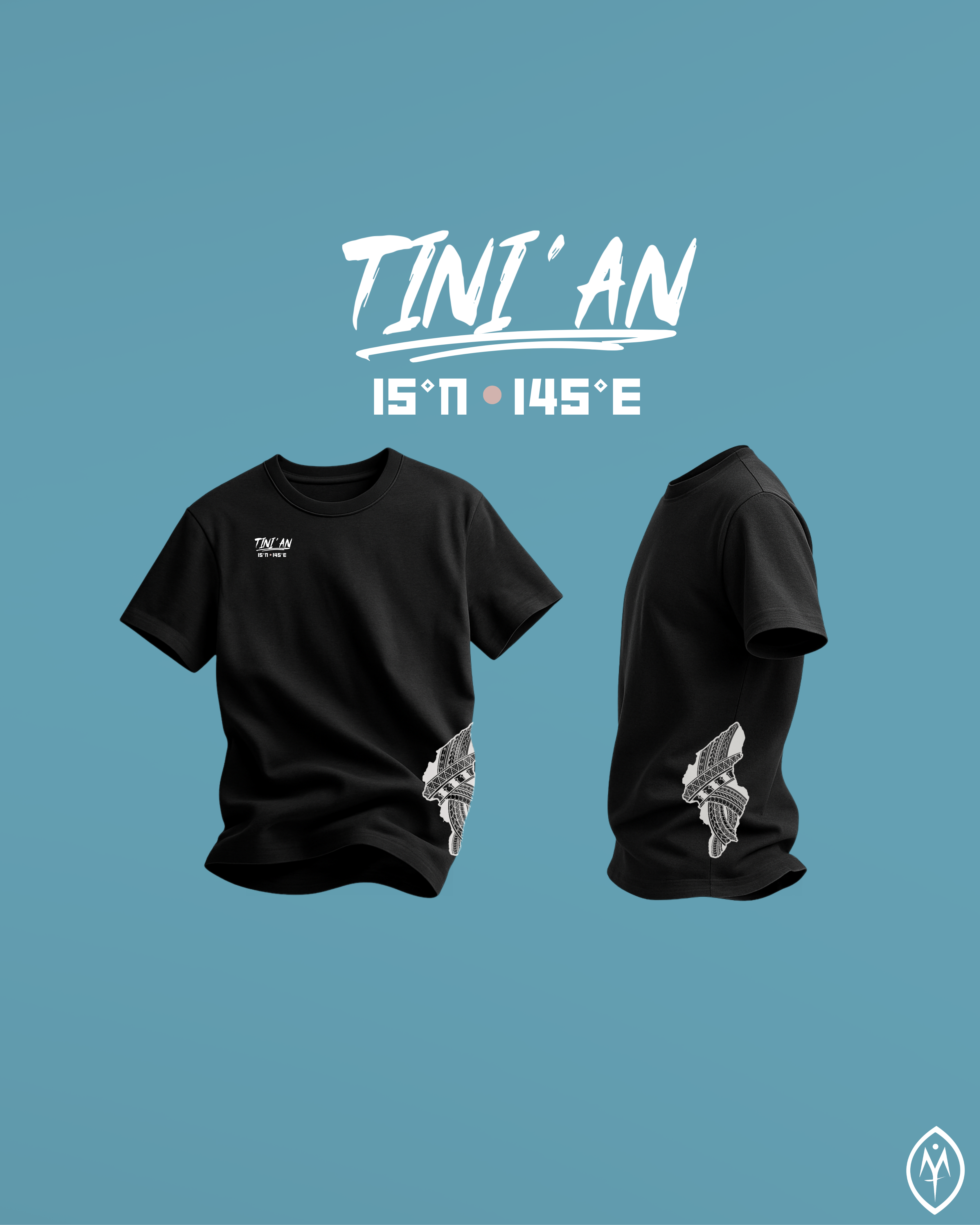 TINI'AN | 15°N •145°E on black. CHamoru Tribal side-print, Coordinates design on patch.