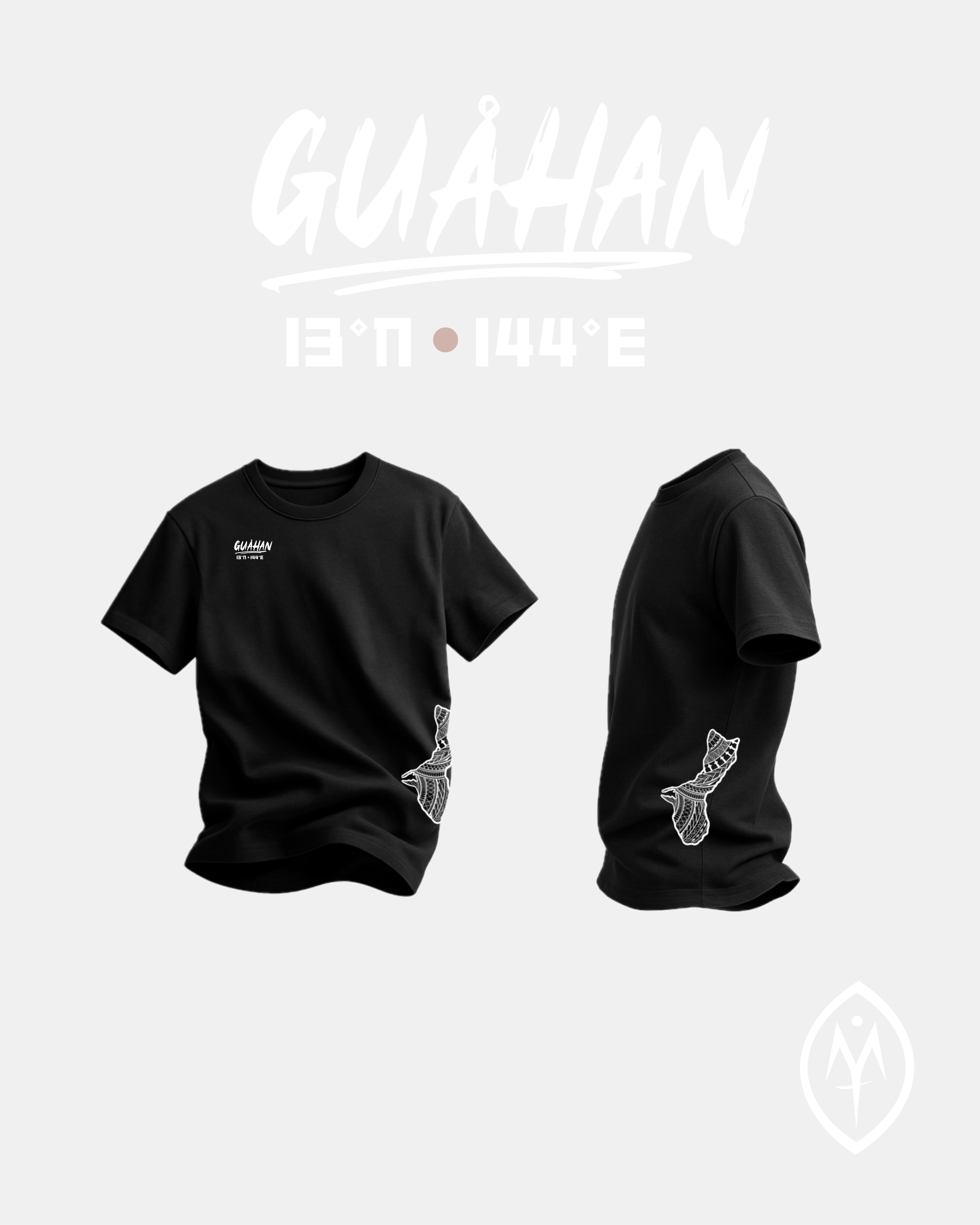 GUÅHAN | 13°N •144°E on black. CHamoru Tribal side-print, Coordinates design on patch.