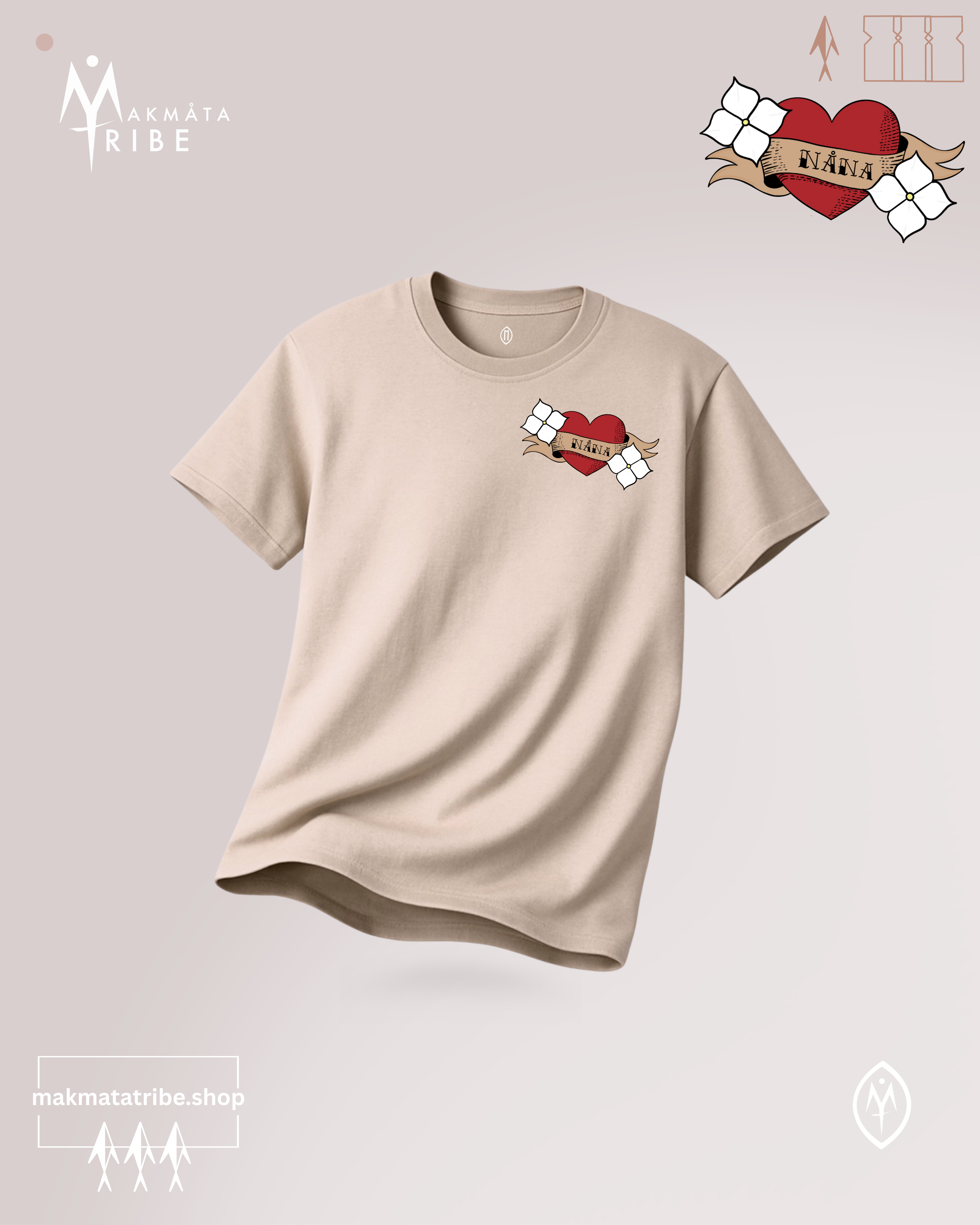 NÅNA HEART TATTOO on Chest, LOGO on Back.