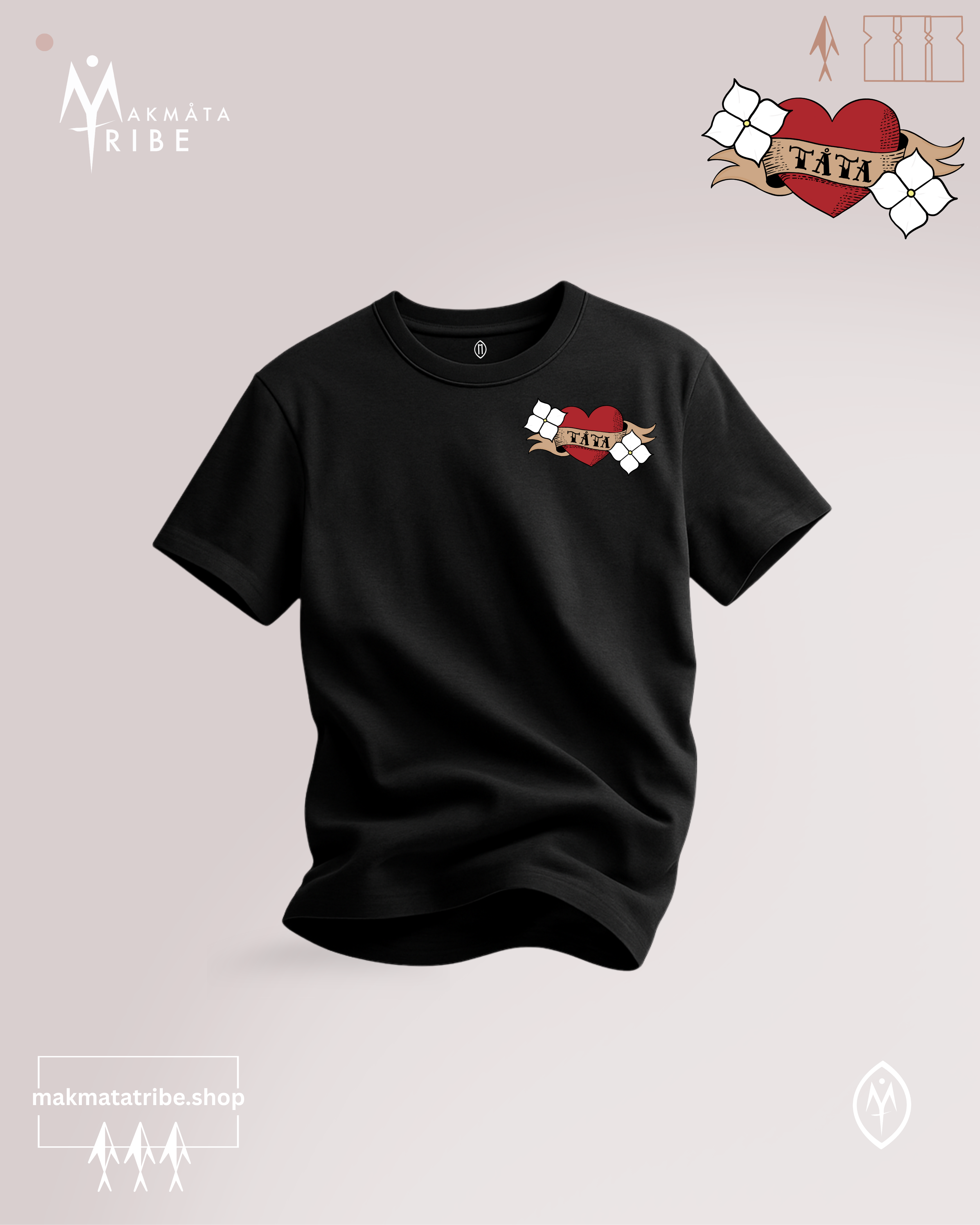 TÅTA HEART TATTOO on Chest, LOGO on Back.